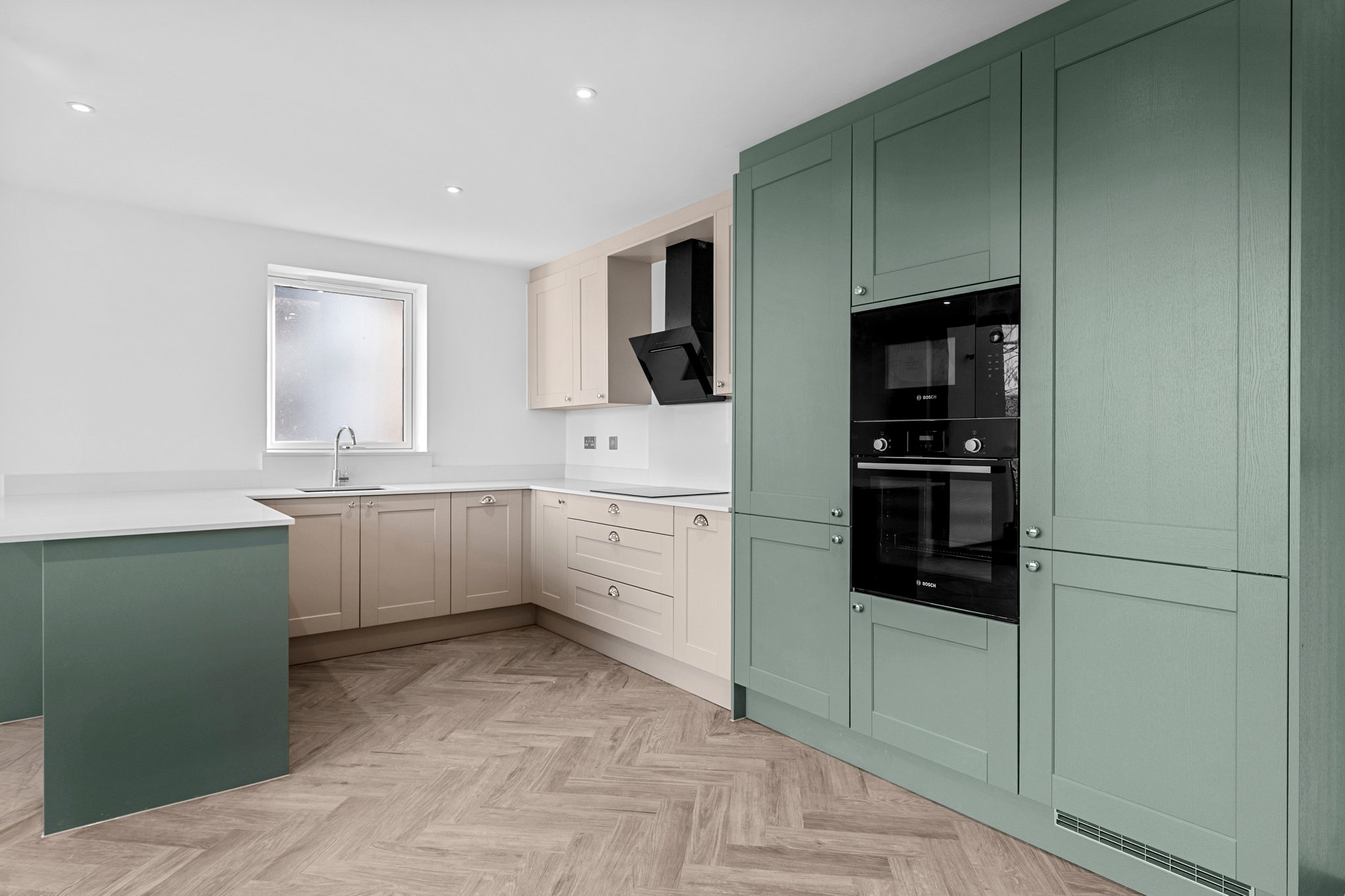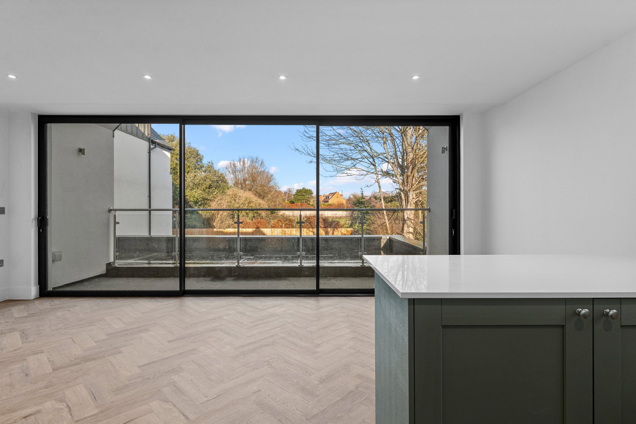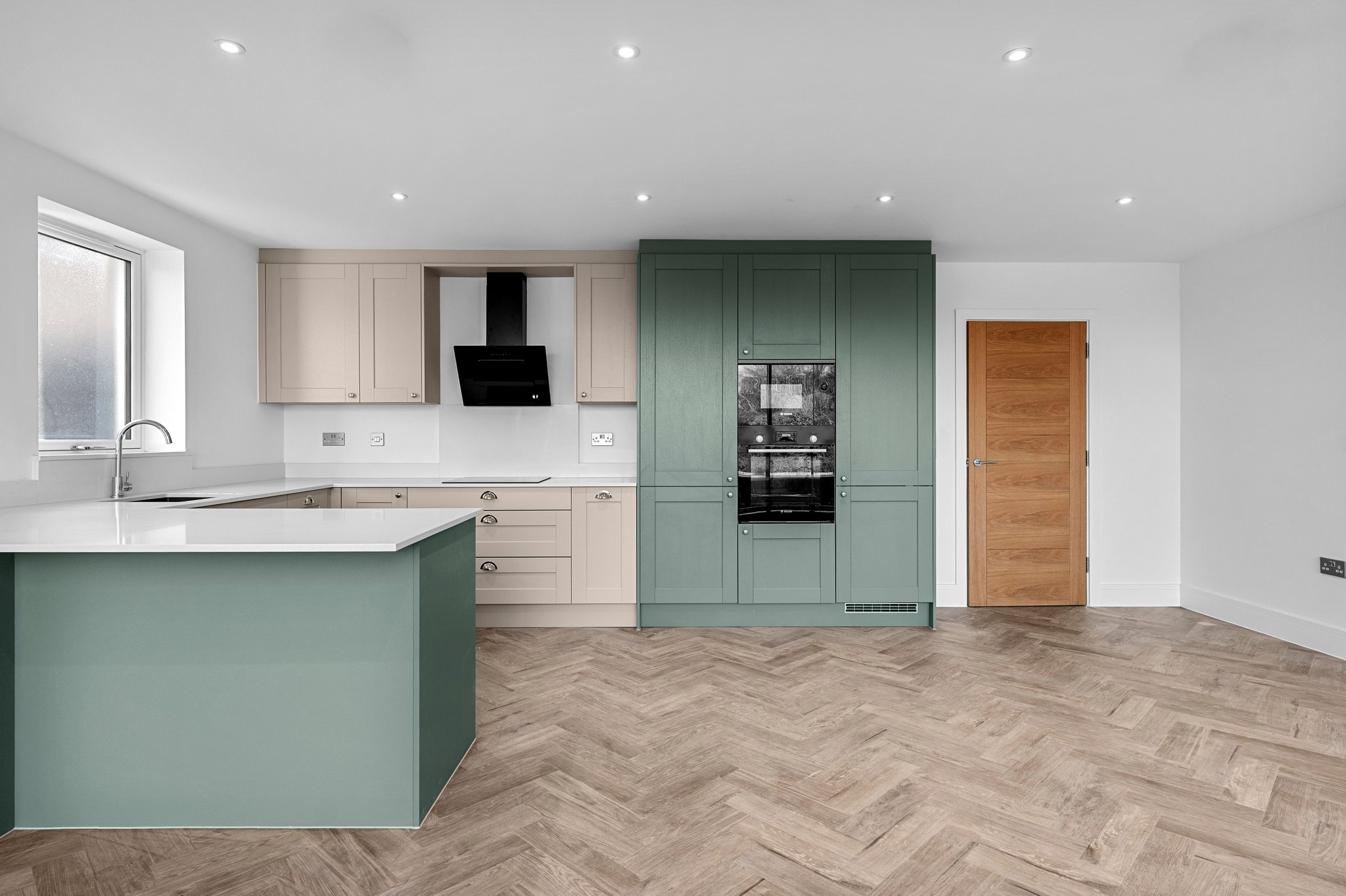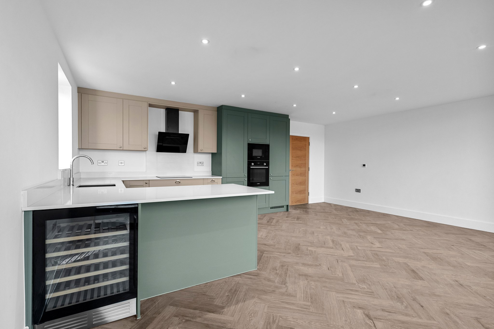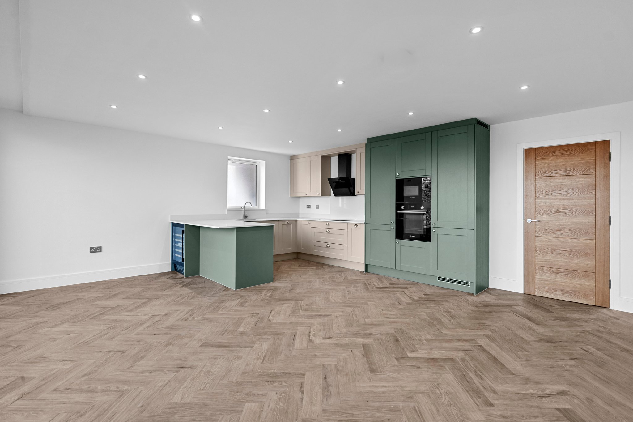 - Bespoke open plan kitchen dining living area with integrated appliances