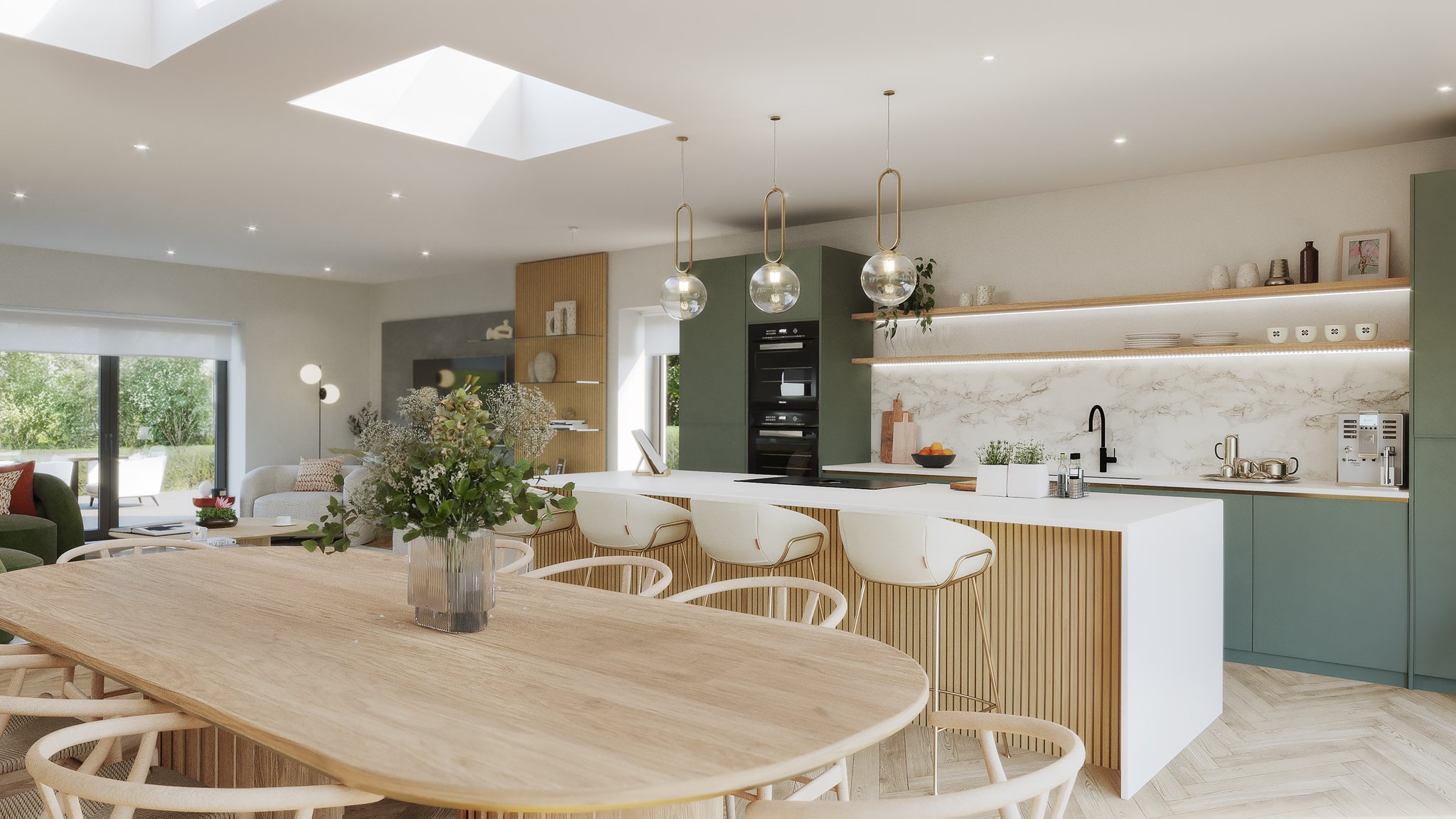 - Handmade bespoke kitchen with sleek stone worktops and integrated appliances