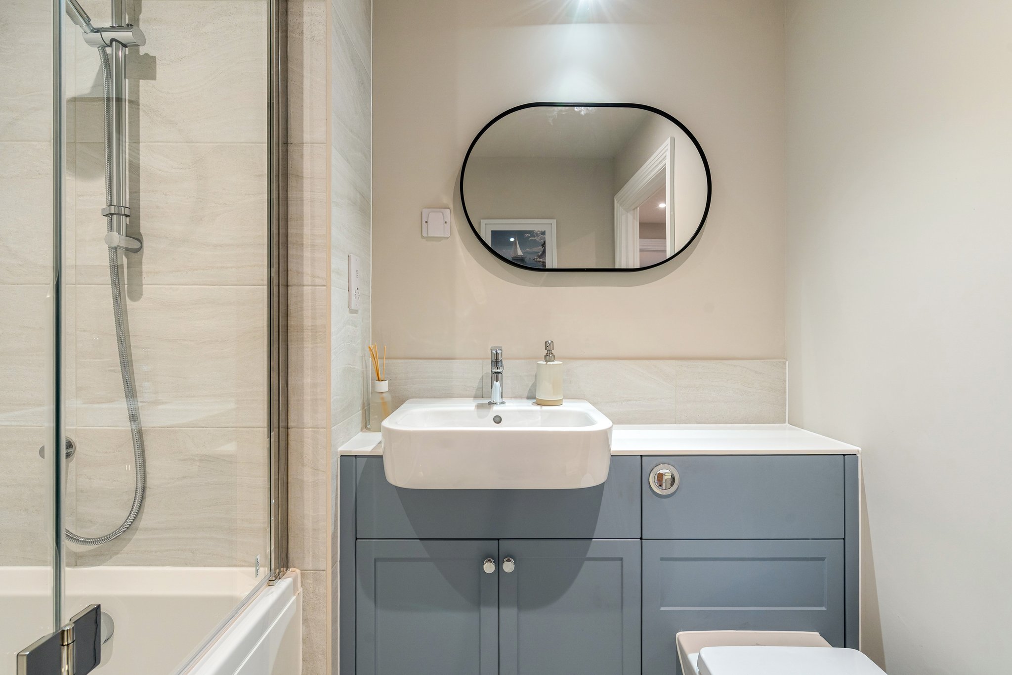 - Main bedroom with ensuite shower room with motion activated low level recessed guide lighting