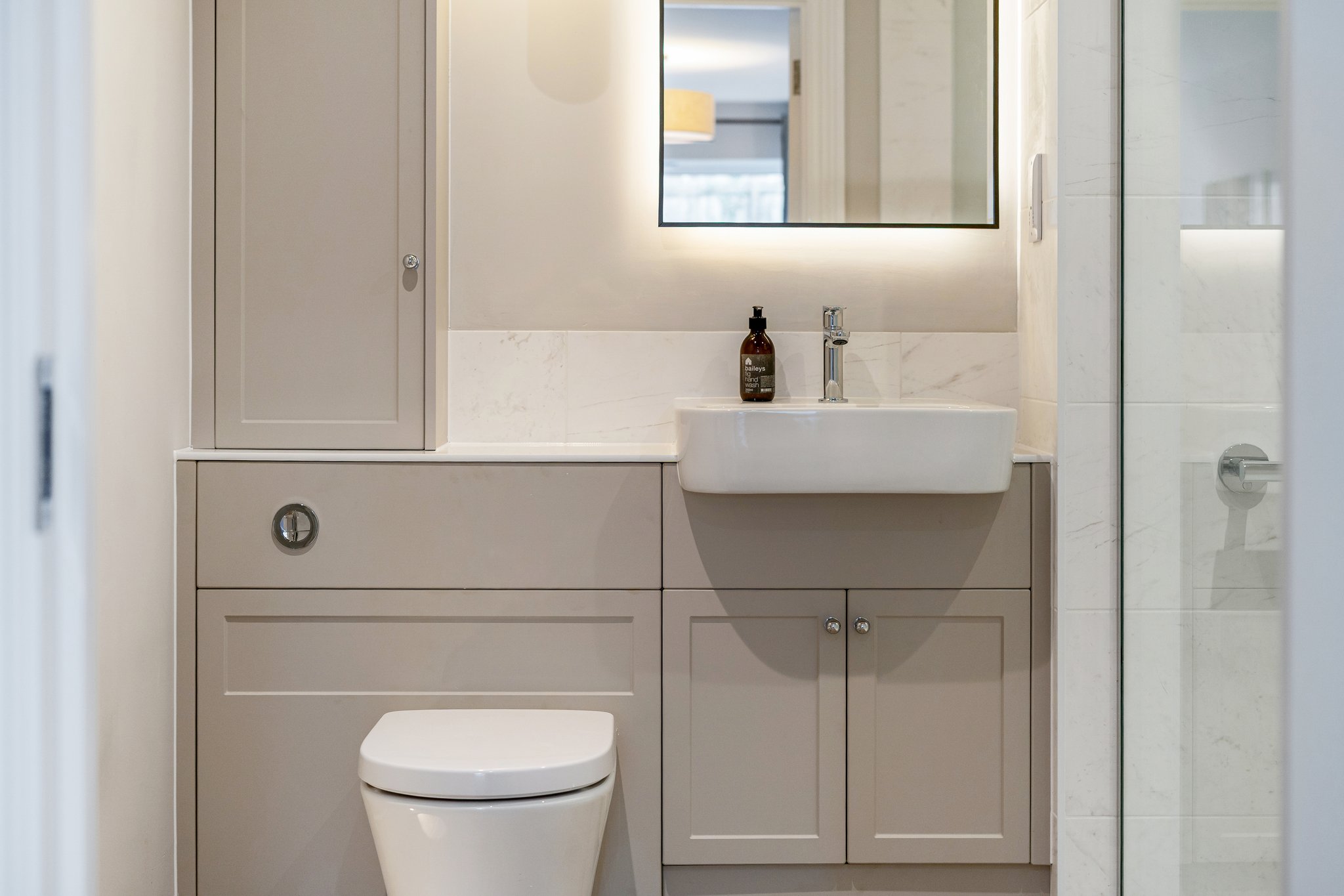 - Bespoke kitchen with Shaker style cabinets and Silestone worktops together with integrated appliances