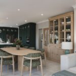 - Beautiful kitchen dining living room with painted shaker-style cabinetry with stone worktops and integrated Siemens appliances and a Quooker 3-in-1 hot water tap