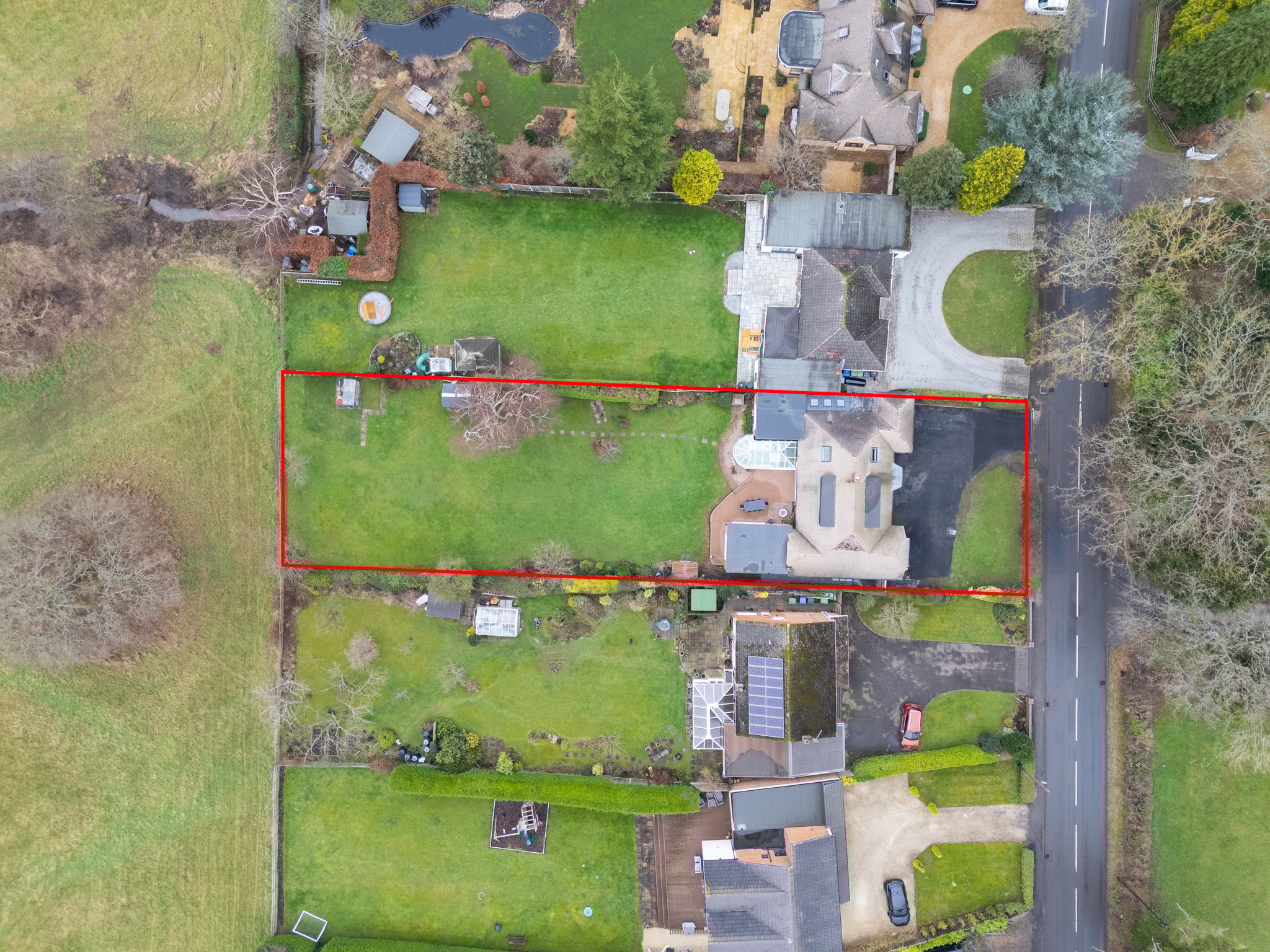 The property is set well back from Henley Road offering lots of space for parking and turning with access into the garage and entrance porch. With a small area of lawn and hedged boundaries.