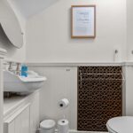 Fitted with a low flush WC, vanity unit with inset wash basin and extractor fan.