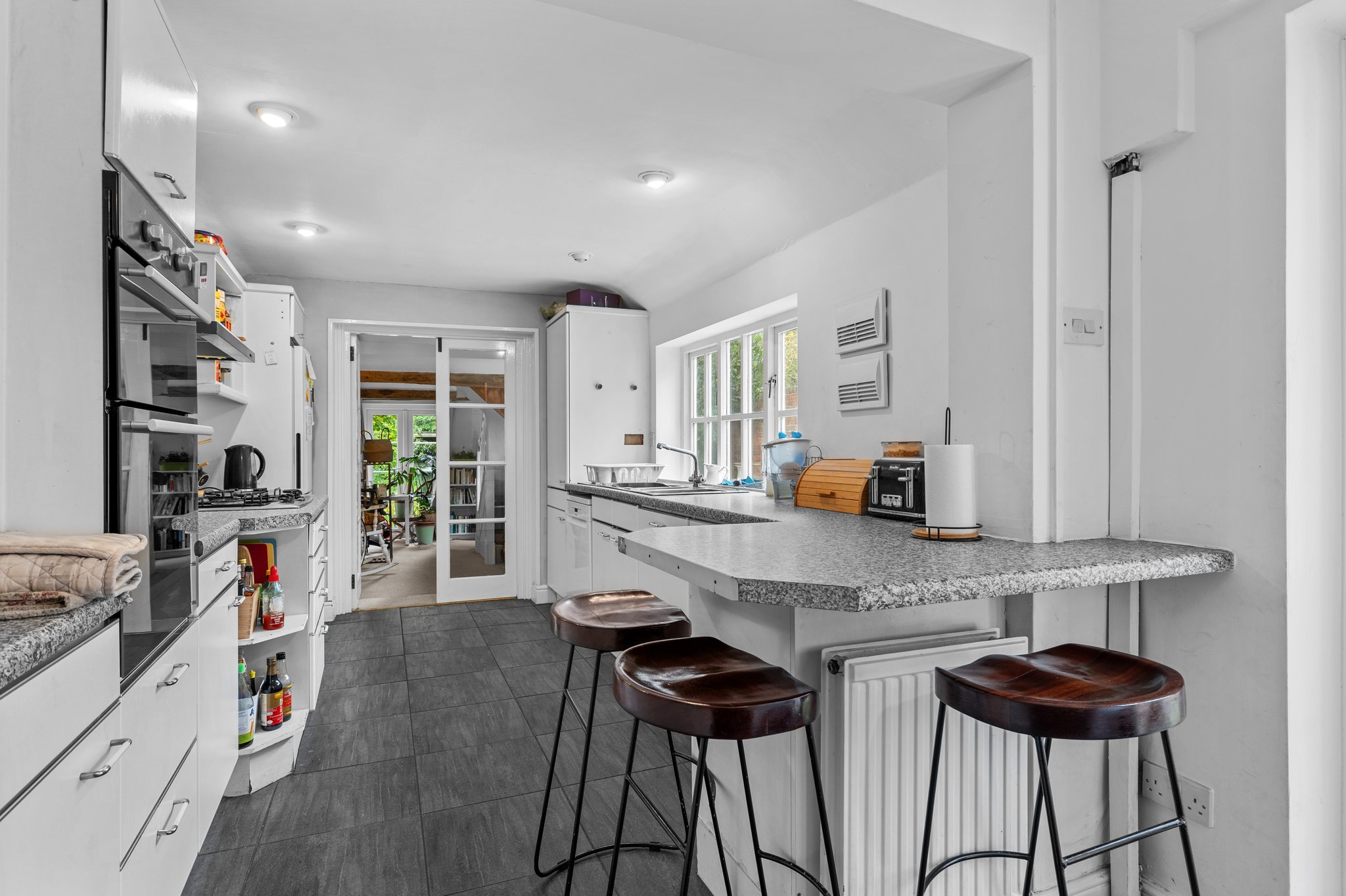 A really flexible reception room and ideal as a breakfast room being so close to the kitchen, but could equally be a lovely snug / TV room. With exposed beam, window to the side elevation and French doors opening on to the rear garden and stairs leading up to the Studio.
