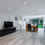 - Beautiful open-plan kitchen / dining room with family area