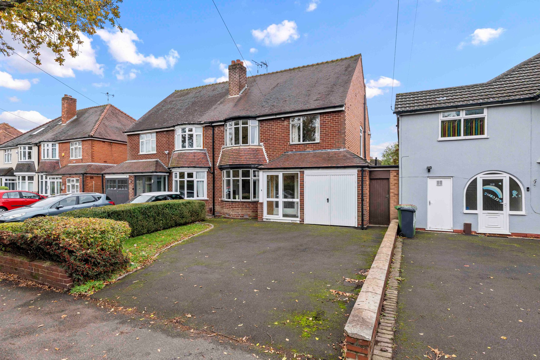 The property is set back from the tree-lined Solihull Road having plenty of driveway parking and a small lawned area to one side.