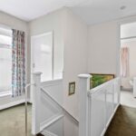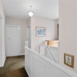 A spacious landing with window to side elevation and tall built-in storage cupboard.