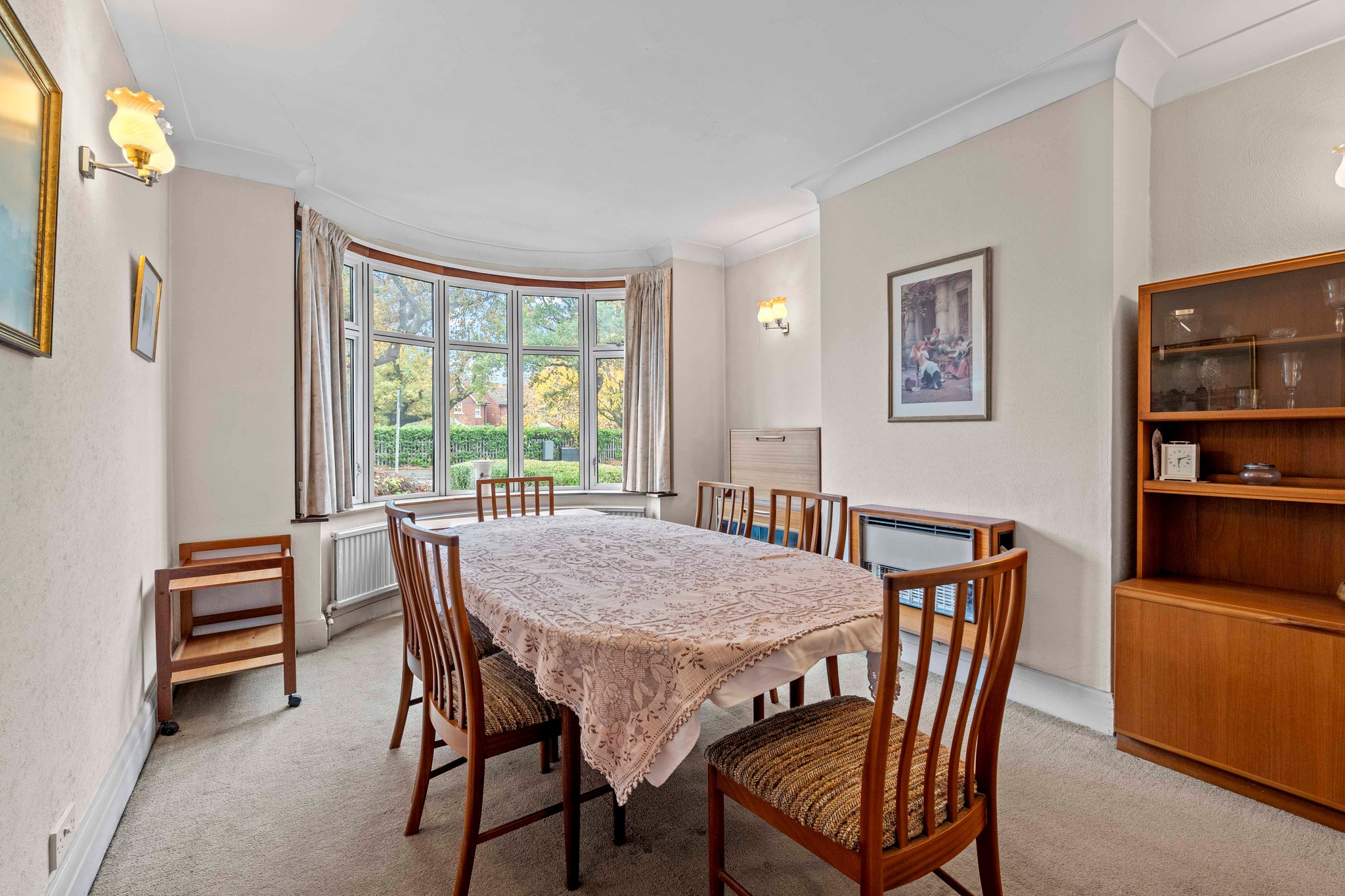 Situated at the rear of the property with views and access to the mature rear garden via patio doors, feature fireplace with gas fire with wooden fire surround and marble back and hearth and cornicing to ceiling.